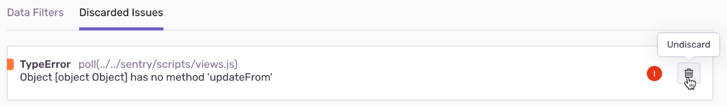 Once you've identified a set of discarded issues, it might make sense to go back to your SDK configuration and add the related errors into your beforeSend client-side filtering.