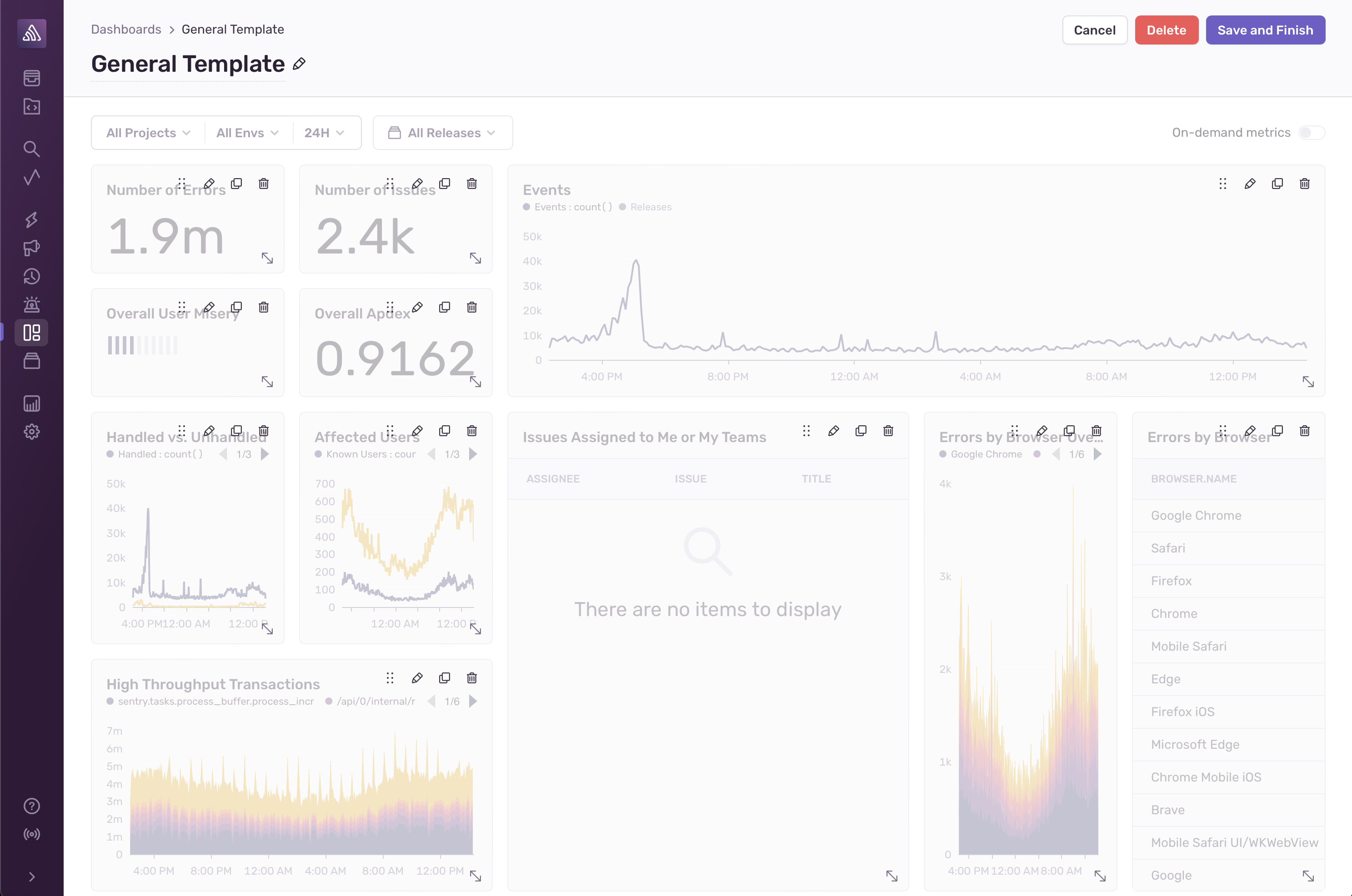 The widget library contains a collection of prebuilt widgets you can add to your custom dashboards. Learn more by reading our Widget Library docs.